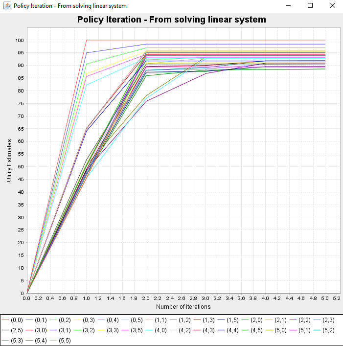 - Click on 'Value Iteration' or 'Policy Iteration', the program will generate a plotted graph visualization in a new window.